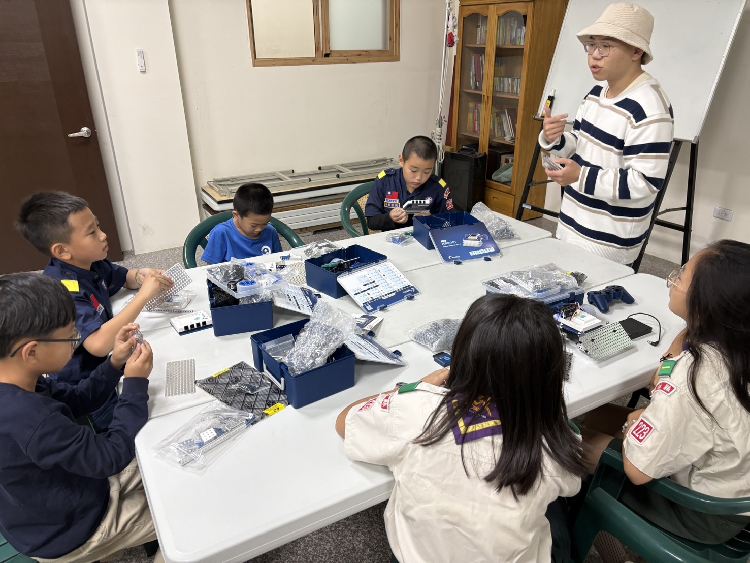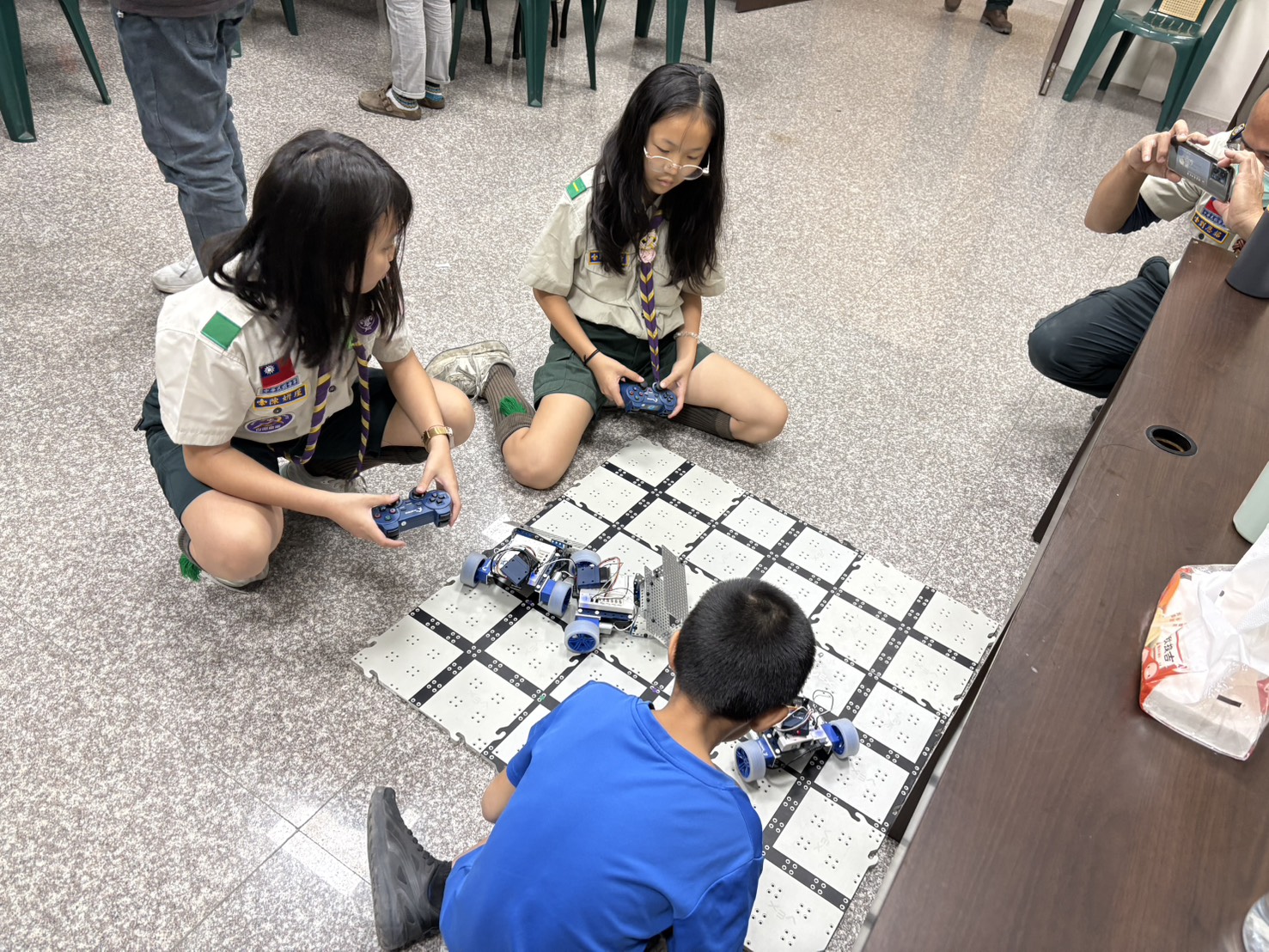在幼兒機器人教育主軸中,學生運用 Tale-Bot Pro 與 Matatalab Coding Set,設計故事導向與圖像化程式活動,實踐「教中學、學中教」的學用合一精神;在兒童機器人與AI應用課程中,透過 OTTO Biped、OTTO Ninja、Matrix 與 VEX GO 機器人,引導童軍完成任務與挑戰,學生也在教學過程中深化工程設計與問題解決能力。