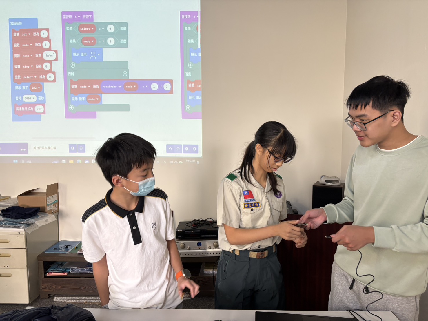 活動上午由國立虎尾科技大學永續發展暨社會責任處執行長林正敏教授說明「尚虎雲」的執行成果,分享虎科大如何透過USR計畫,建構學生參與、在地連結與永續實踐的學習模式。下午課程則由三位參與USR與專業工讀的學生——余家豪、黃培峰、溫博鈞——實際擔任課程講師,將課堂所學的程式設計、機器人控制與AI應用,轉化為適齡、易懂的教學內容,帶領童軍進行實作體驗。