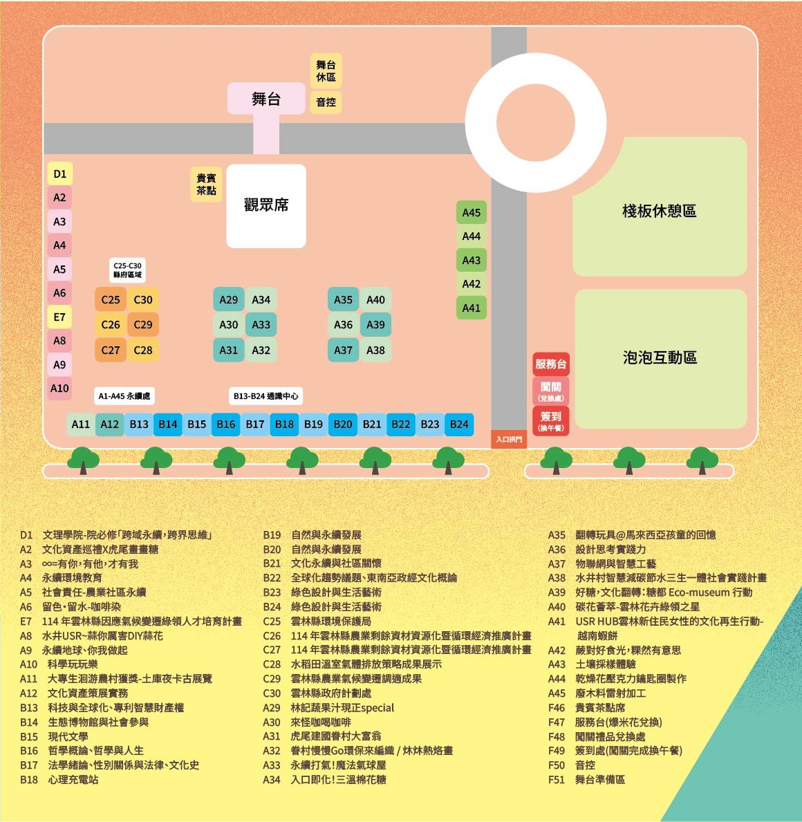 **主舞台拍照打卡@加追蹤雲林縣政府及永續處之IG、FB、Threads-3選1,即可至以下攤位換取遊戲機會,各攤位至多各乙次