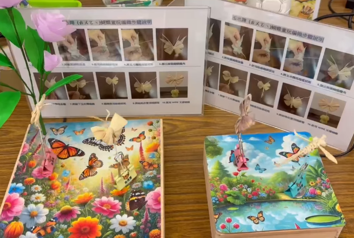 此外,永續發展暨社會責任處執行長暨雲林官邸兒童館館長更結合人工智慧(AI)影像生成技術,將現場完成之玉米籜金魚作品轉化為動態影片,使原本靜態的手作成果化身為水中悠游的數位影像,展現科技與藝術融合之創新應用,深化整體學習體驗層次。