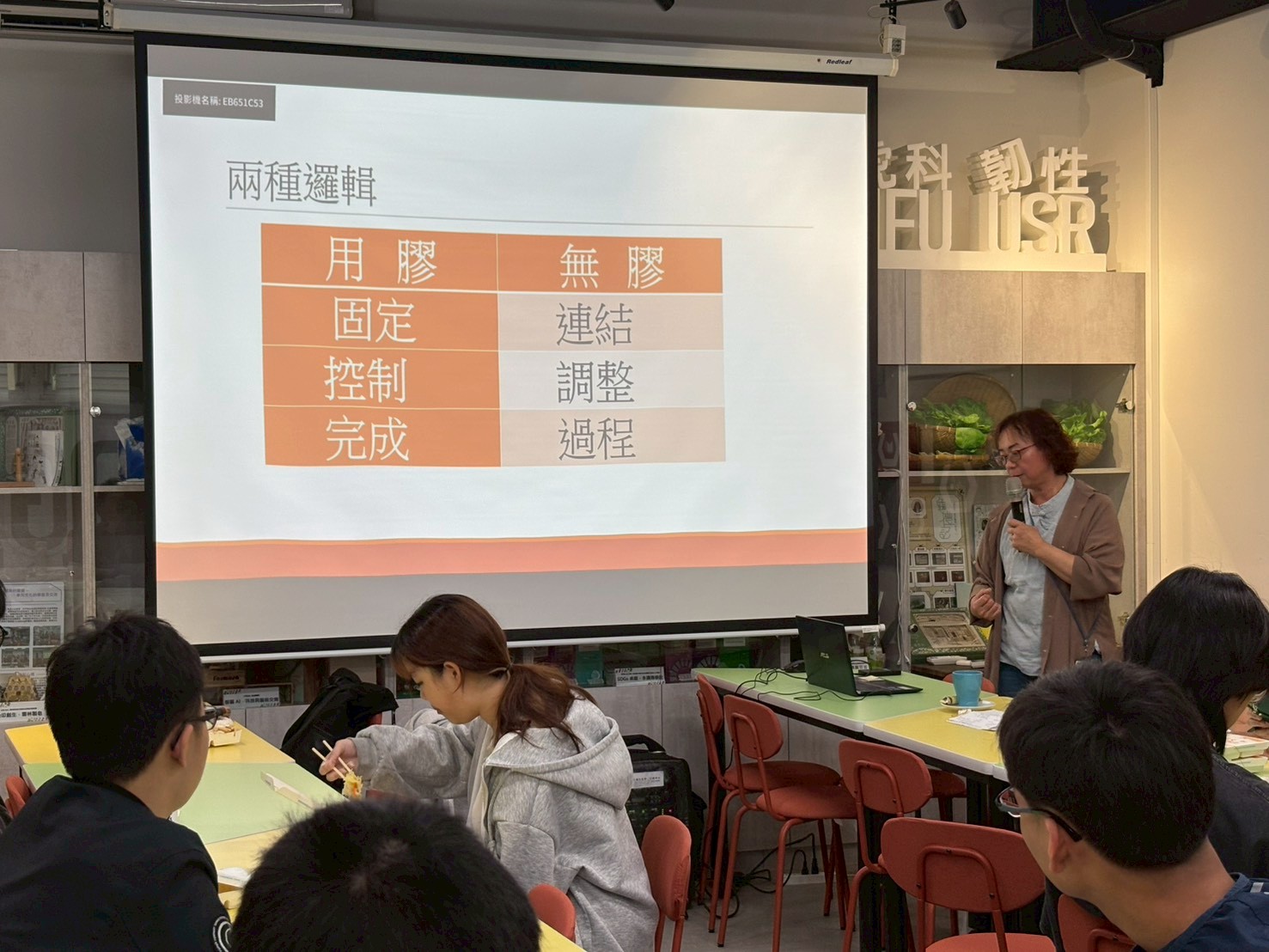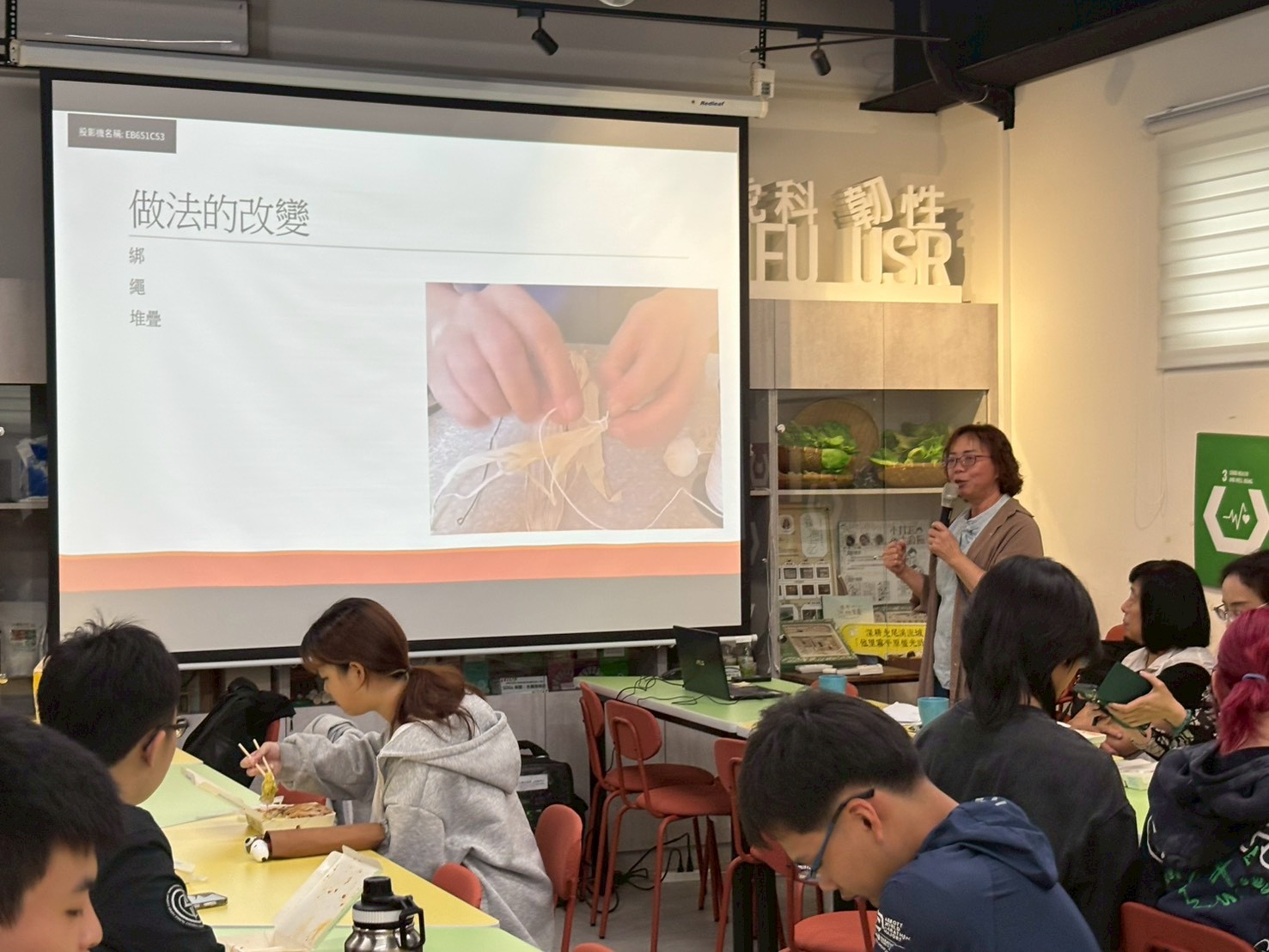 虎科大「尚虎雲」學生團隊在張老師指導下表現亮眼,2025 年由企劃長范芷紜帶領「哥布林一起強大隊」榮獲永續生活實驗獎佳作,並實際協助元長鄉子茂社區建立玉米籜回收站,將環保理念轉化為具體行動。講座中,張婉玉老師分享了「不用膠,也能讓世界連結」的核心哲學。她強調創作並非「控制」材料,而是與纖維特性進行「對話」,並感性地表示:「當一片被丟棄的籜葉能成為作品,那人也可以。」鼓勵師生透過手作尋找自我價值與社區歸屬感。