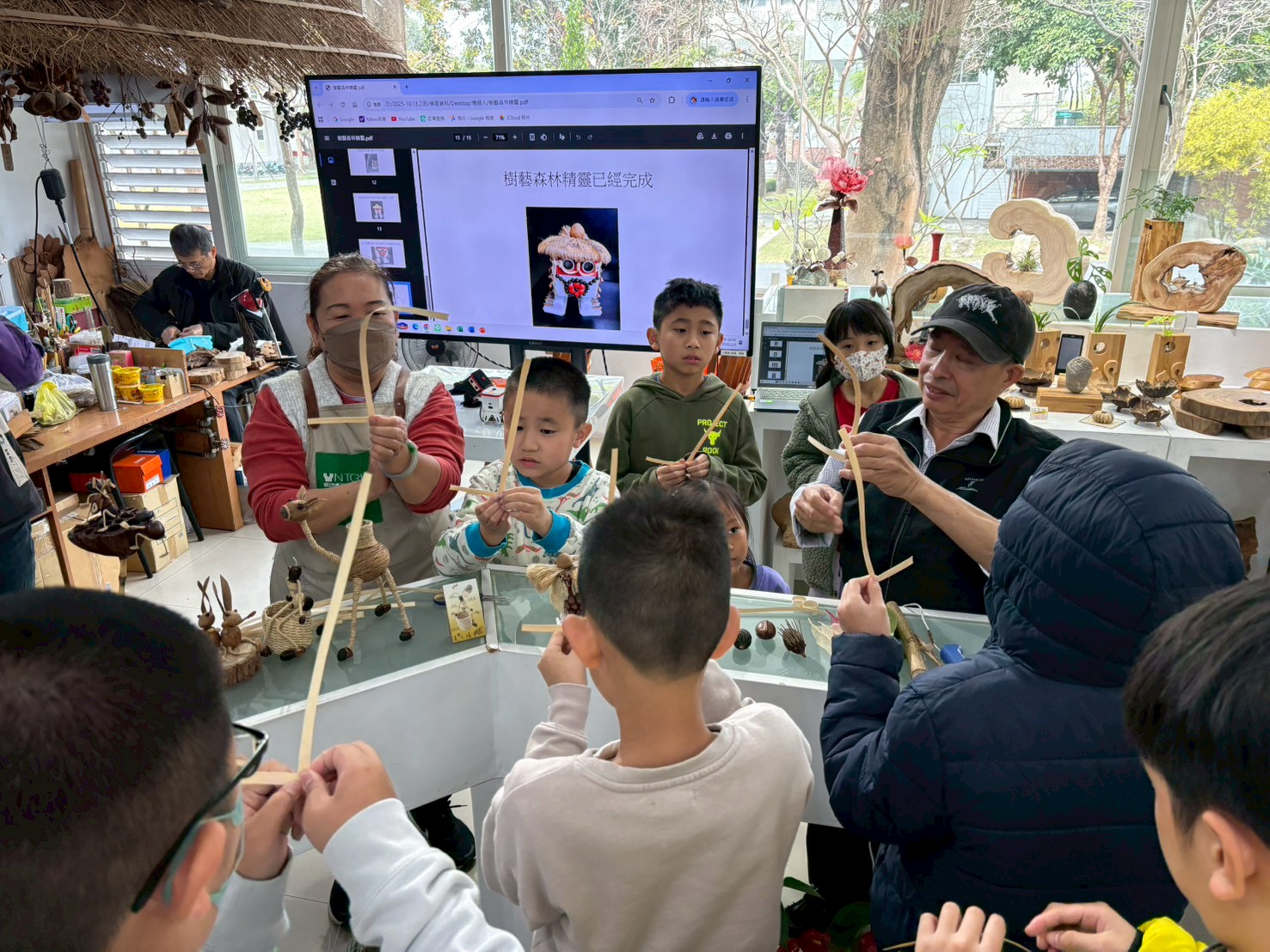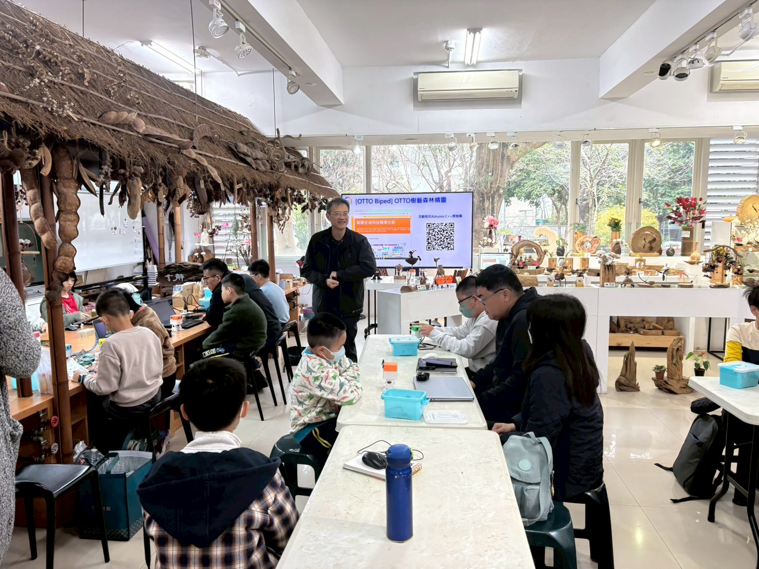 李永謨老師指出,工藝的價值不只在完成品,更在於孩子與材料互動的學習歷程。「自然素材的觸感、形狀與色澤都獨一無二,孩子必須觀察、取捨與配置;當他們將材料特性融入外觀設計,就同時在練習美感判斷、創意表達與材料運用能力。」林正敏老師亦表示,科技教育若能連結生活情境與在地文化,學習將更有感。「孩子透過任務挑戰學會拆解問題、找出錯誤並修正,最後看到機器人依自己的程式行走與跳舞,會產生強烈成就感,這正是跨域素養教育最重要的動力來源。」